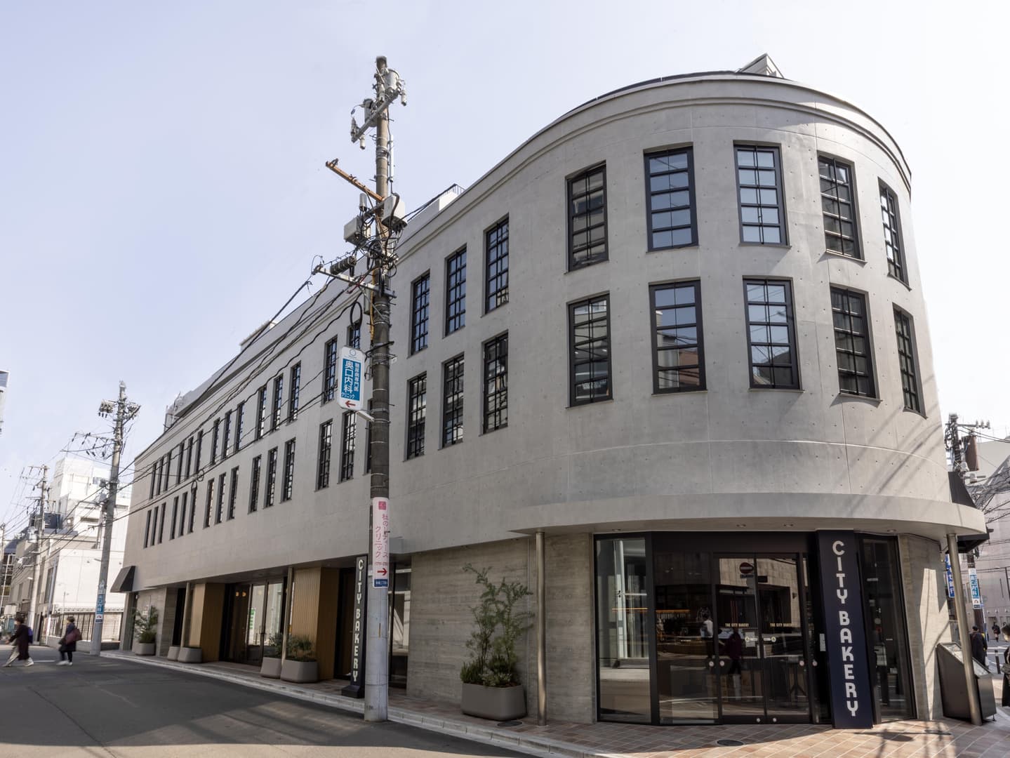 建物は、読売新聞販売店跡地に新設された“読売青葉テラス”。1939年に東京・銀座に建てられた読売新聞・旧社屋の外観デザインを採り入れた、街に向けて大きく開き、気軽に立ち寄りやすいデザイン。格子状の窓枠とコンクリ ート打ち放しの外壁には、重厚感とレトロ感が共存。3階のテラス席は、空を眺め、仙台の空気を感じていただける。この一棟全フロアという贅沢な空間に、東北エリア初出店にして日本最大規模の「THE CITY BAKERY」となった。