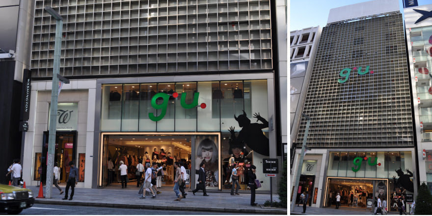 所在地:東京都中央区銀座5-7-7 延床面積: 約6,500㎡ 竣工: 平成17年10月(リニューアルオープン) 所有者:銀座ワシントン テナント:ユニクロ(現在はg.u.)