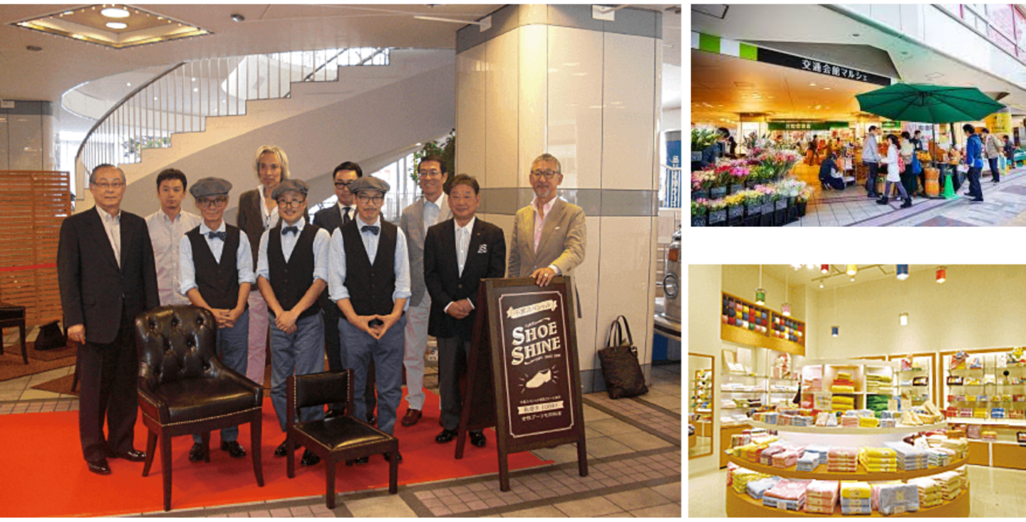 そんな「志」を大事にした。現在、今人気の各県や市の物産展は11店、県の案内4店舗となり、物産展巡りのメッカ的存在となっている。またかつて遊休していた1階のピロティーでは、そこに面する本屋を中心にマルシェ、オープンカフェ(コーヒー)、靴磨き、花屋が並び、ひとつの文化圏を形成し、人々を楽しませている。